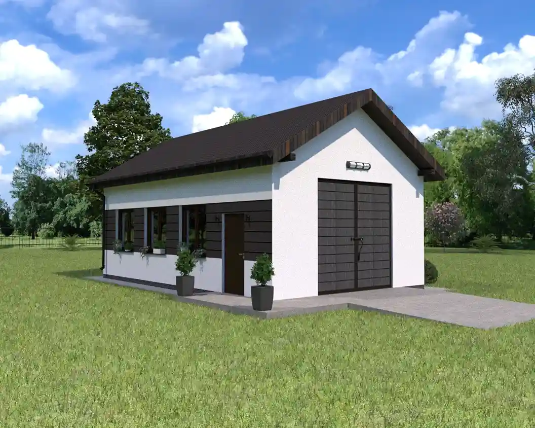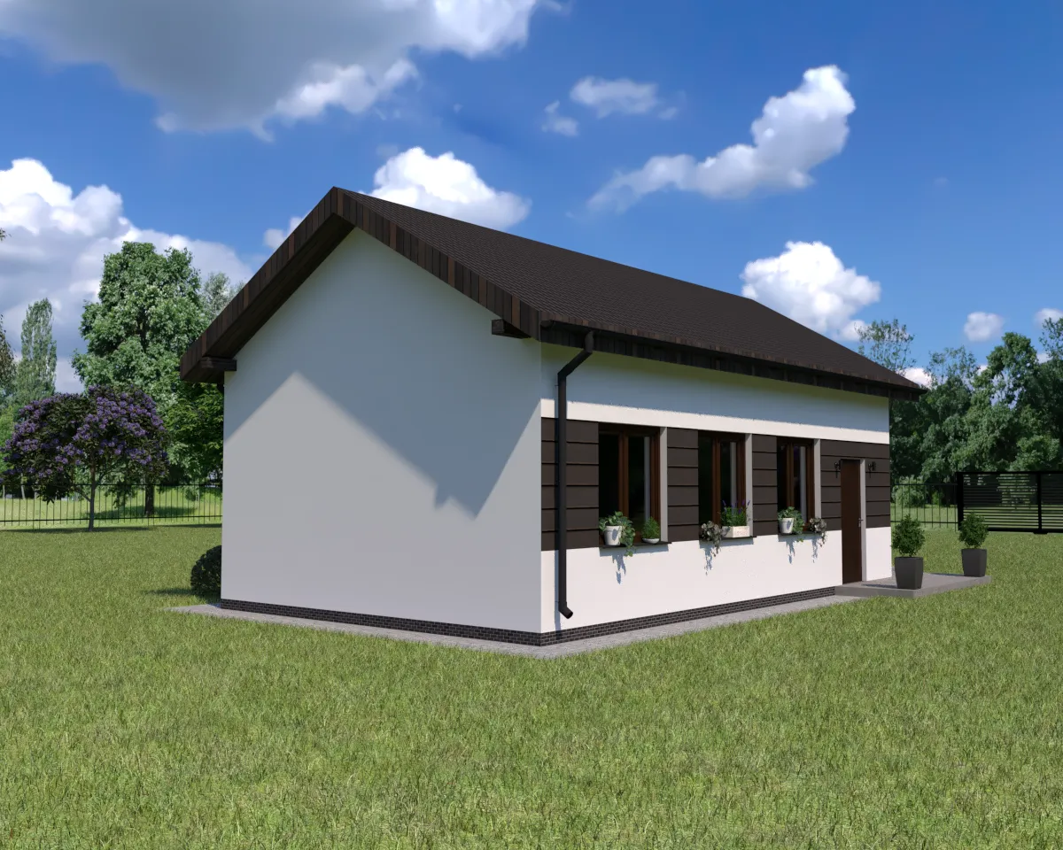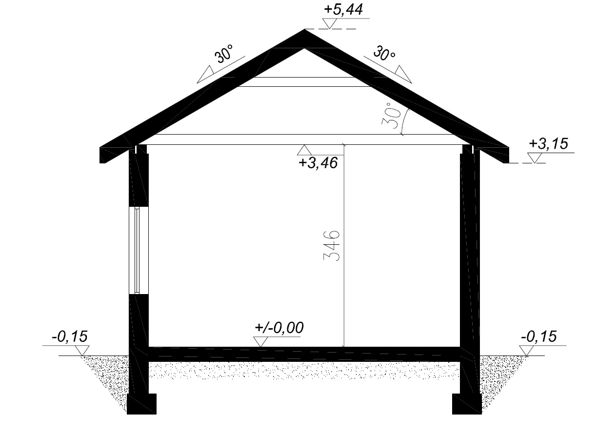 - Dach: dwuspadowy o kącie nachylenia 30°