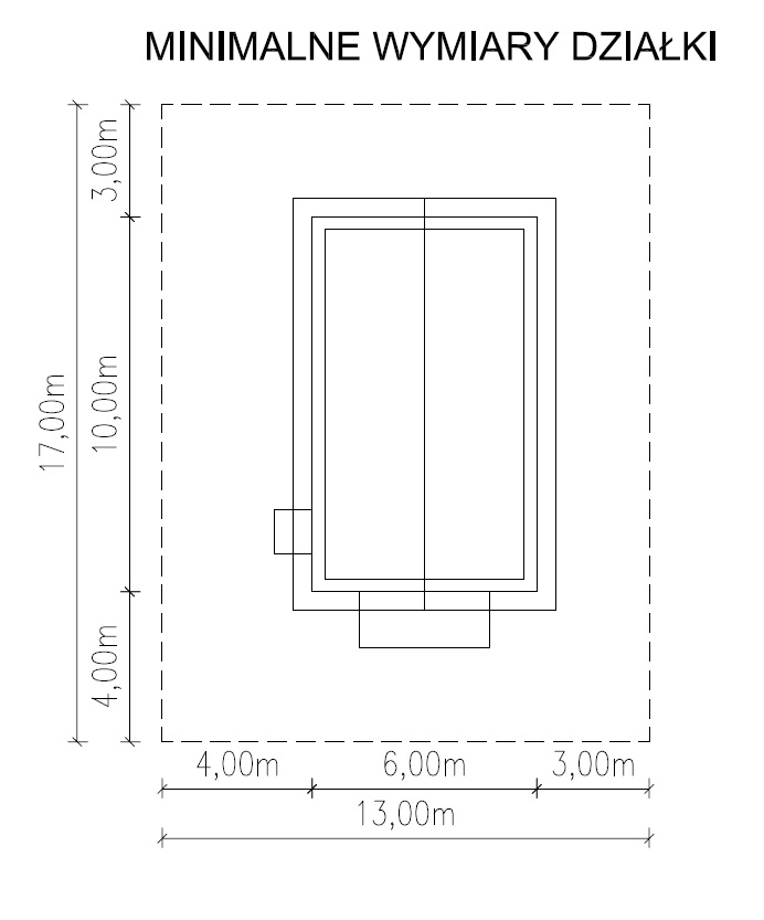 - Minimalne wymiary działki13,00x17,00 m