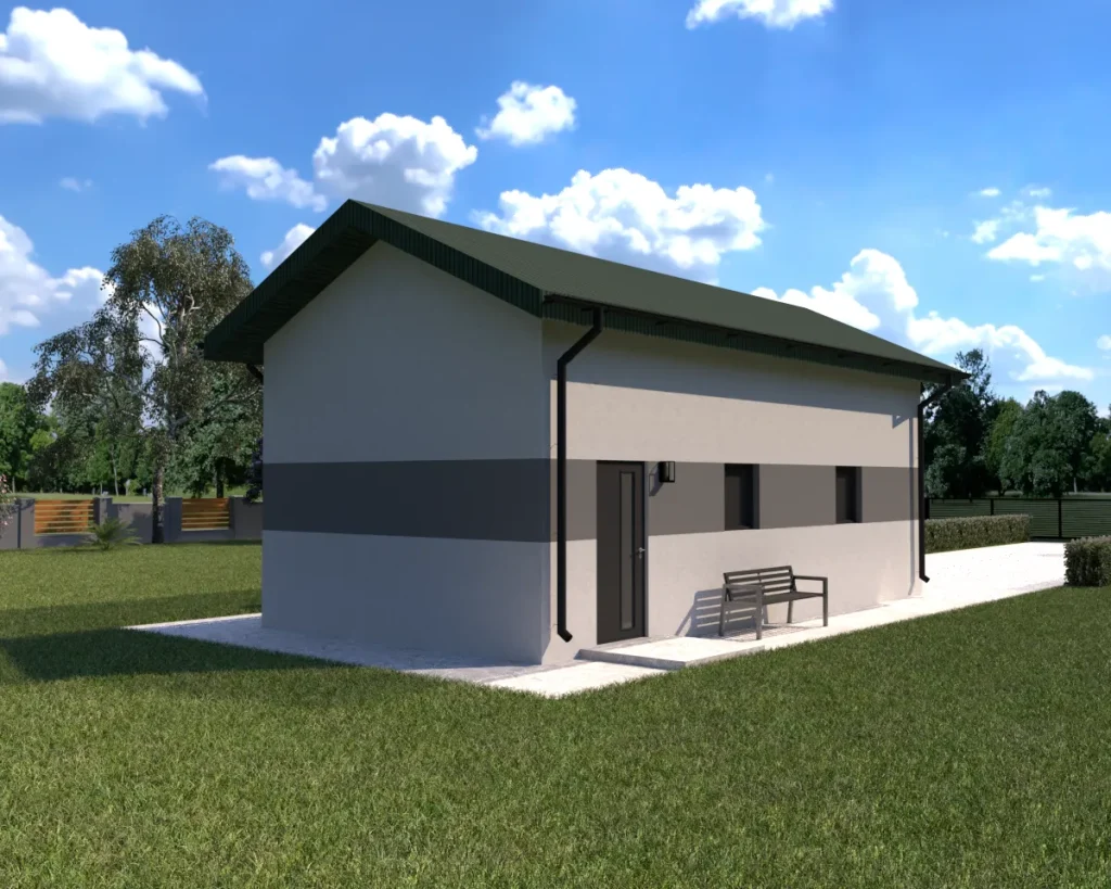 Nasze Projekty garaży jednostanowiskowych przygotowane są w taki sposób, aby ułatwić adaptację do warunków lokalnych. Architekt adaptujący może wprowadzić zmiany – np. skorygować wymiary, przełożyć bramę na inną ścianę, dodać kolejne okno czy zmodyfikować układ pomieszczenia gospodarczego. Dzięki temu garaż będzie dopasowany nie tylko do Twojego samochodu, ale również do działki i sposobu korzystania z przestrzeni.